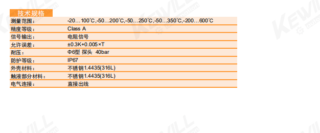 TP21包含一个PT100探头,PT100阻值会随温度变化而变化,PT100有二线式,三线式,四线式几种规格可供选择。