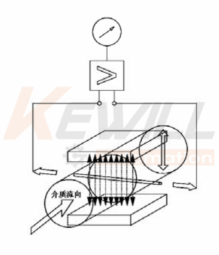 测量流量时,导电性液体以速度V流过垂直于流量方向的磁场,导电性液体的流动感应出一个与平均流速成正比的电压,其感应电压信号通过二个或二个以上与液体直接接触的感应电极检出,并通过电缆送至转换器通过其智能化处理,实现流体瞬时流量、积累流量的显示及流量数据与控制系统之间的通讯。测量管内无活动及阻流部件,因此几乎没有压力损失,并且有很高的可靠性。